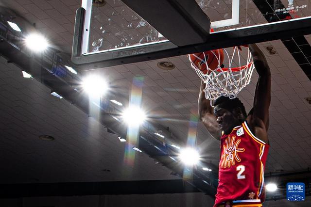 12月7日,山西汾酒隊球員諾威爾在比賽中扣籃。新華社記者 肖藝九 攝