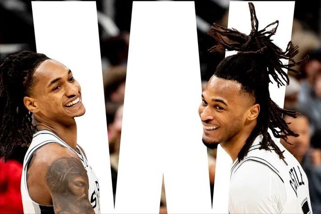 除了??怂?,馬刺隊(duì)的兩名年輕后衛(wèi)同樣展現(xiàn)出出色的天賦。瓦塞爾15投7中,三分球9投4中得到18分7籃板3助攻2搶斷;卡斯?fàn)柕陌l(fā)揮更加高效,24分鐘10投7中,得到了17分7助攻2籃板。甚至不夸張的說,卡斯?fàn)栐谖磥泶蟾怕蕰?huì)逐步取代??怂埂K谋憩F(xiàn)愈發(fā)穩(wěn)定和高效,現(xiàn)在的他已經(jīng)成為馬刺隊(duì)史拿到1500分的第三年輕球員,前兩位是文班和帕克。馬刺隊(duì)首發(fā)只有58分的一大原因,還包括文班亞馬最近一直在打替補(bǔ)。今天文班亞馬繼續(xù)替補(bǔ),打了21分鐘15投10中,得到了26分12籃板3助攻2封蓋1搶斷,同樣夸張的數(shù)據(jù)。而且自復(fù)出以來,文班亞馬替補(bǔ)合計(jì)出場(chǎng)60分鐘,得到63分,正負(fù)值高達(dá)+64!